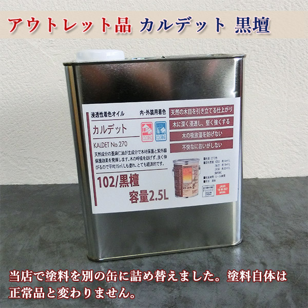 - > アウトレット品 カルデット(カラーオイル) 102/黒檀 2.5L(約31平米/2回塗り)
